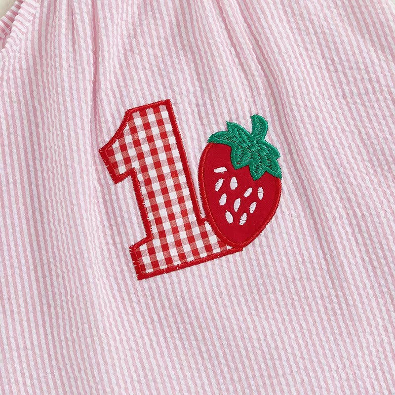 Baby Girl Birthday Dress, Sweet Striped Embroidery Strawberry Slip Dress Princess Dress for Daily Party