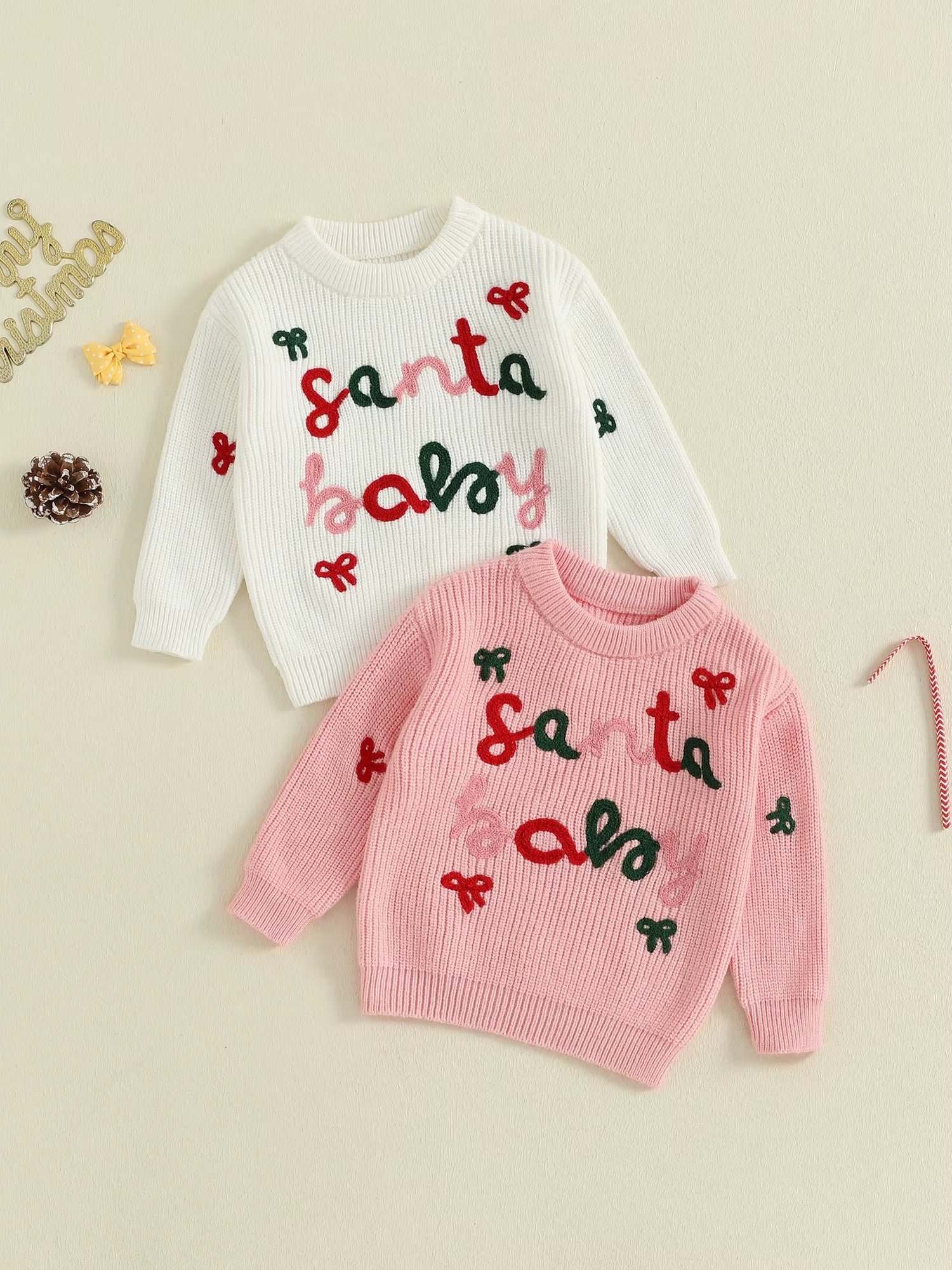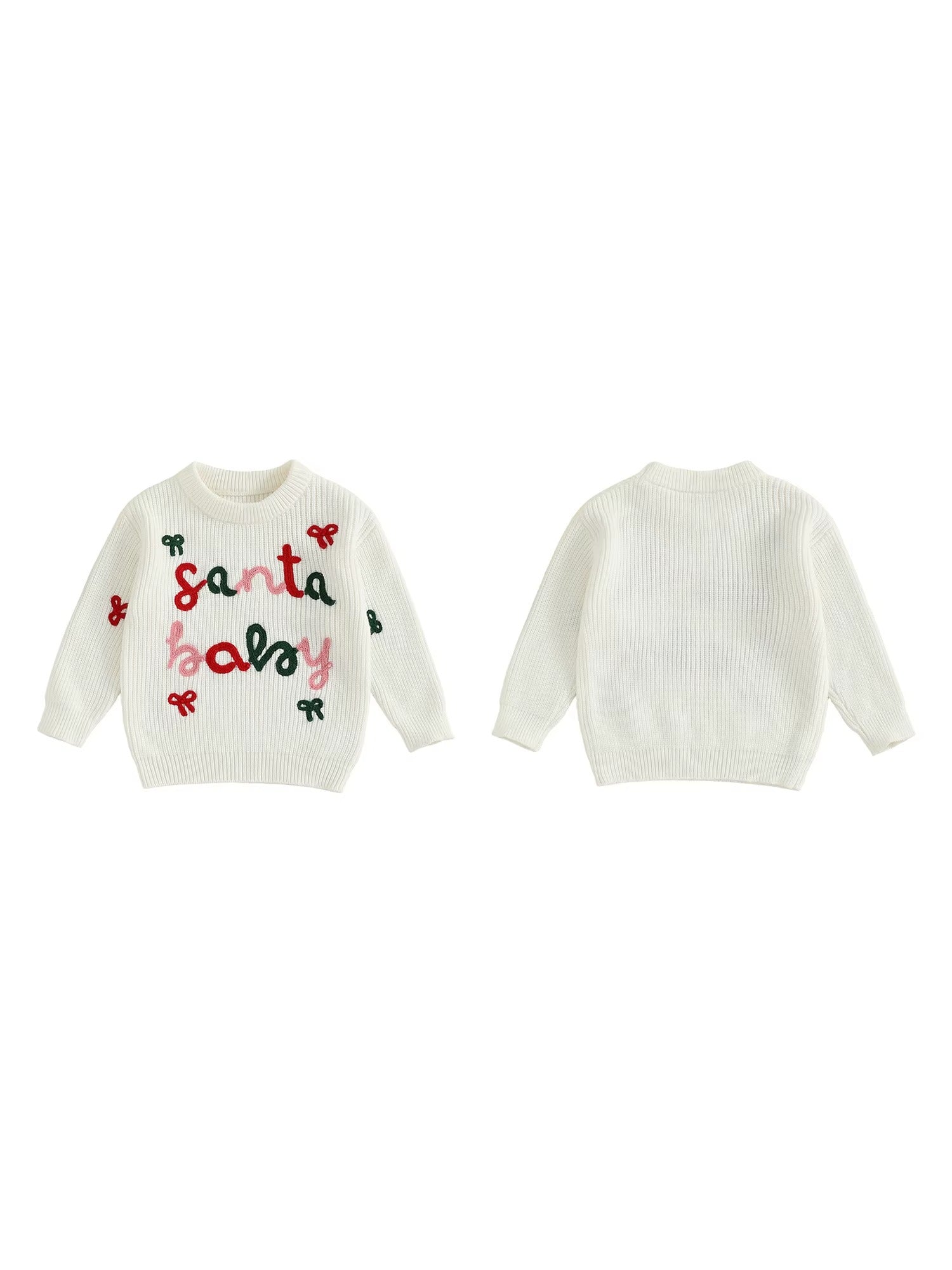 Baby Girl Christmas Sweaters Long Sleeve Round Neck Letter Bow Embroidery Tops Toddler Sweatshirts
