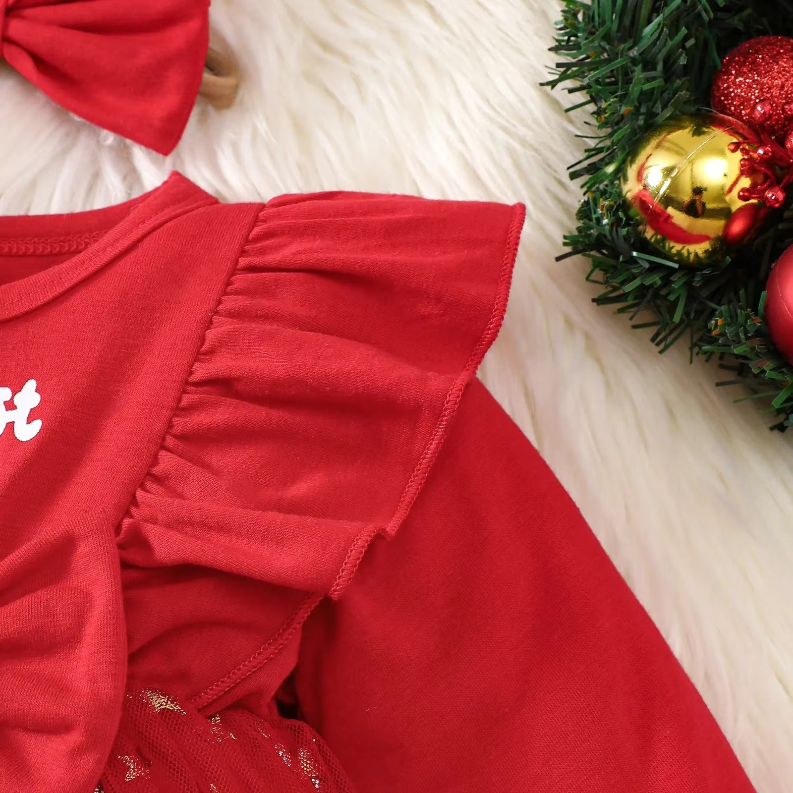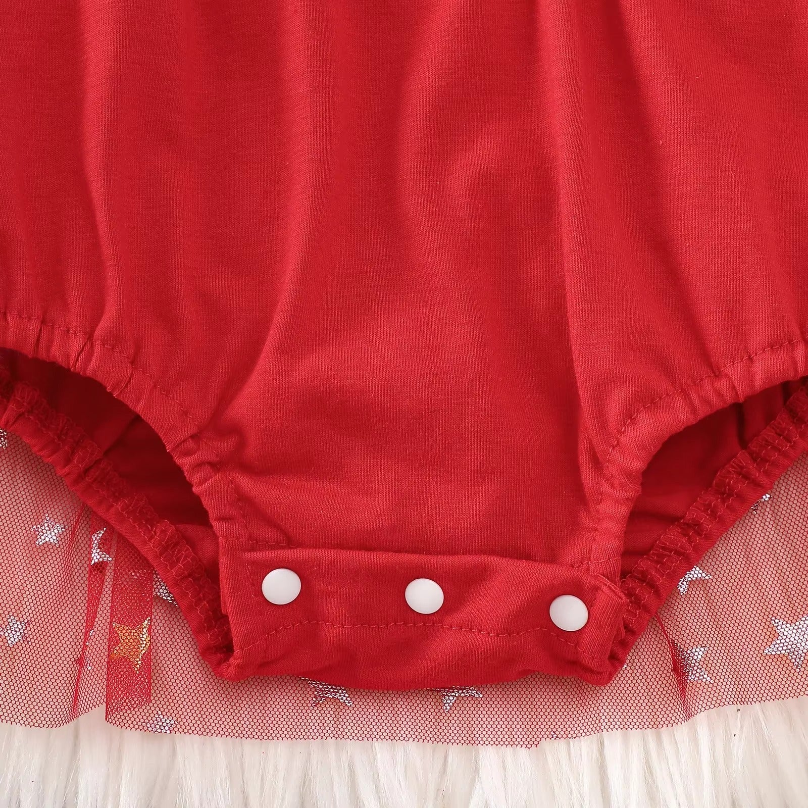 Features ruffled sleeves, a big bow, and starry tulle for an adorable look.